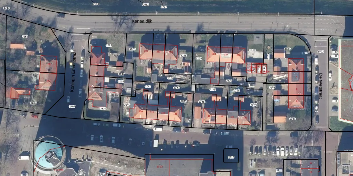Gebruik de zoekbalk of klik op een perceel om informatie over het perceel te bekijken.