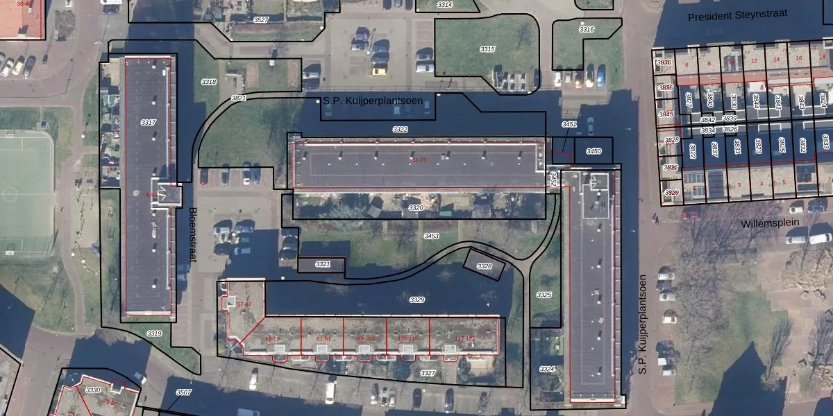 Gebruik de zoekbalk of klik op een perceel om informatie over het perceel te bekijken.