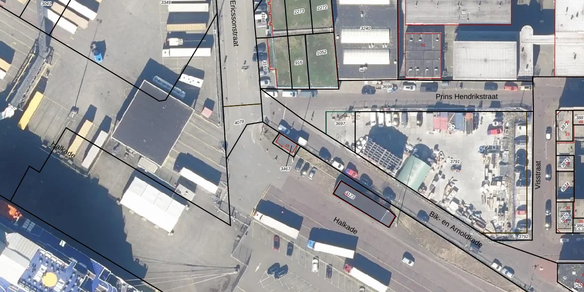 Gebruik de zoekbalk of klik op een perceel om informatie over het perceel te bekijken.