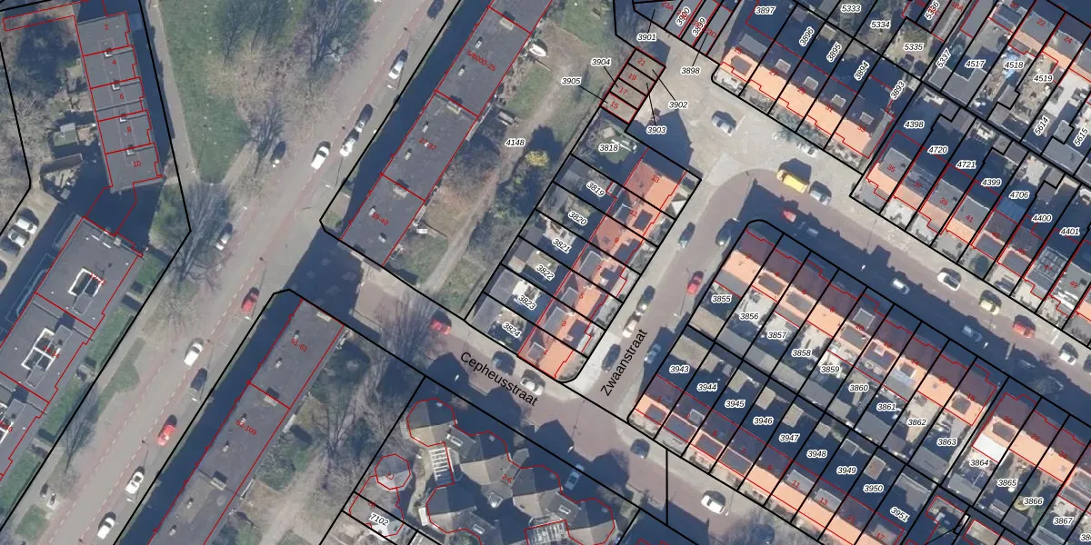 Gebruik de zoekbalk of klik op een perceel om informatie over het perceel te bekijken.