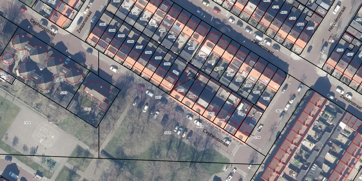Gebruik de zoekbalk of klik op een perceel om informatie over het perceel te bekijken.