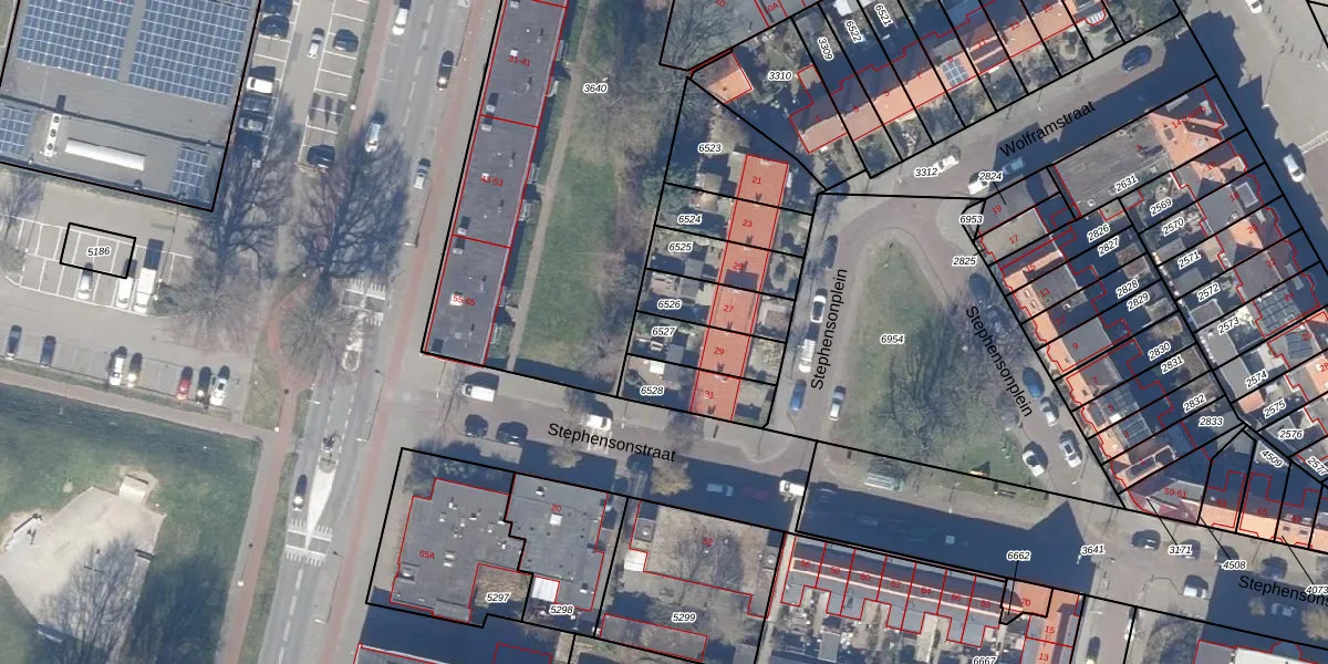Gebruik de zoekbalk of klik op een perceel om informatie over het perceel te bekijken.