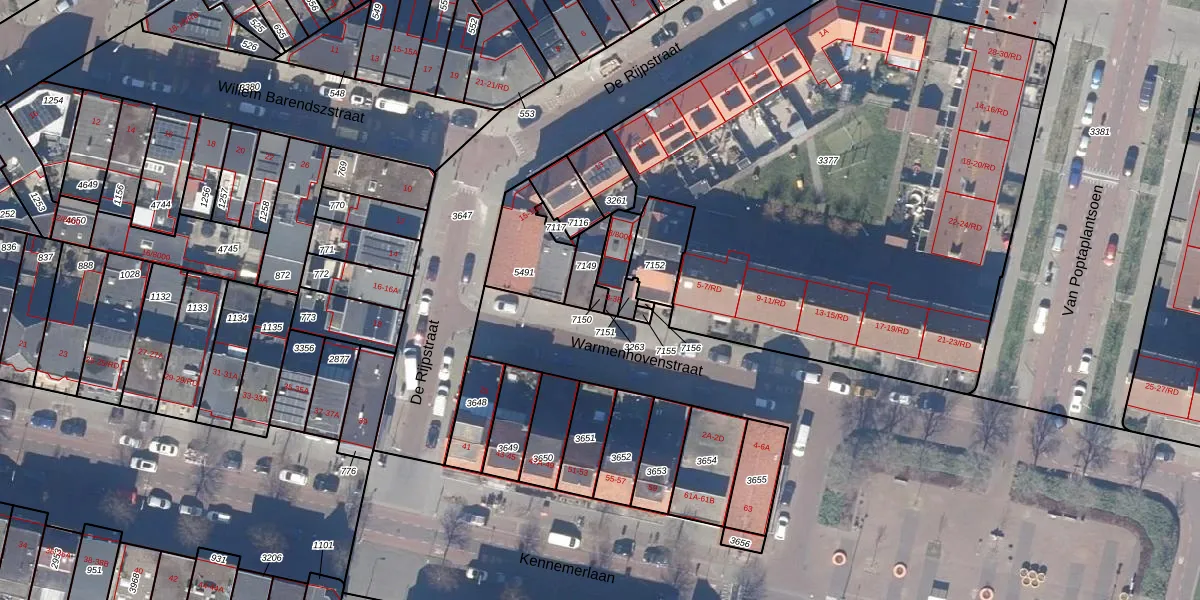 Gebruik de zoekbalk of klik op een perceel om informatie over het perceel te bekijken.