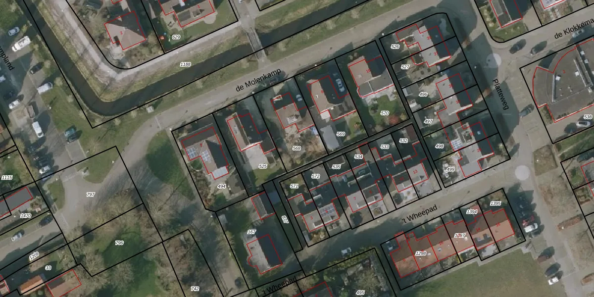 Gebruik de zoekbalk of klik op een perceel om informatie over het perceel te bekijken.