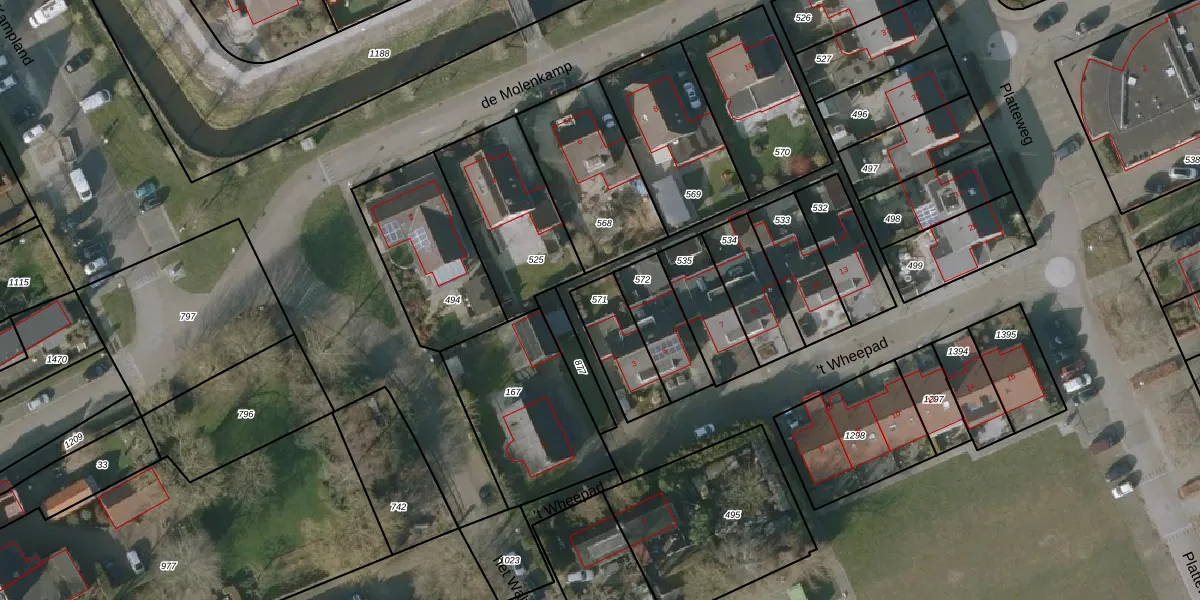 Gebruik de zoekbalk of klik op een perceel om informatie over het perceel te bekijken.