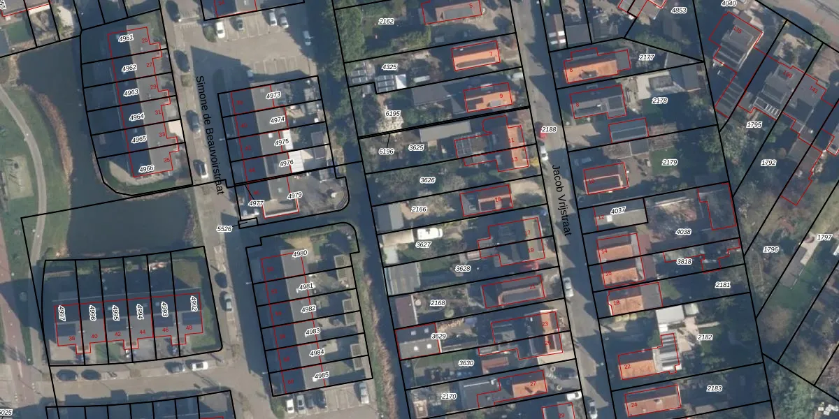 Gebruik de zoekbalk of klik op een perceel om informatie over het perceel te bekijken.
