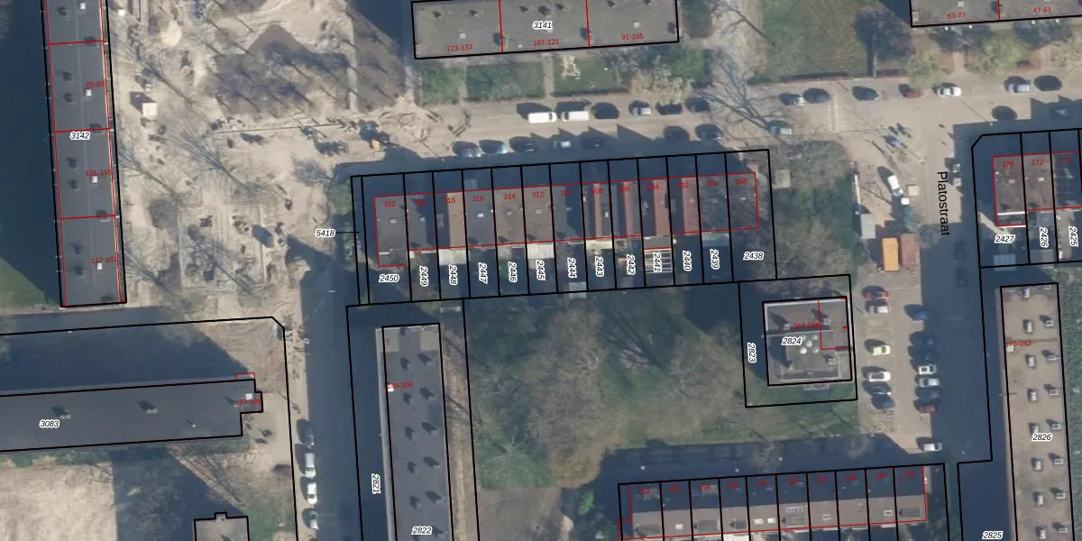 Gebruik de zoekbalk of klik op een perceel om informatie over het perceel te bekijken.