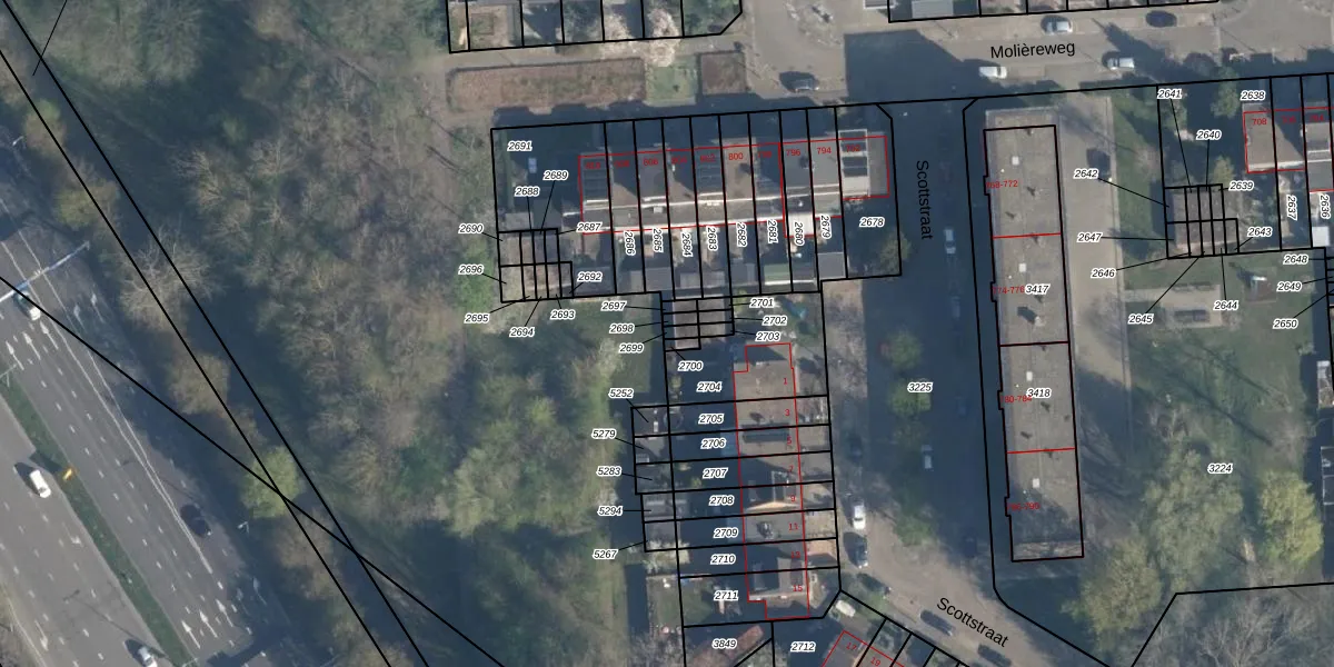 Gebruik de zoekbalk of klik op een perceel om informatie over het perceel te bekijken.