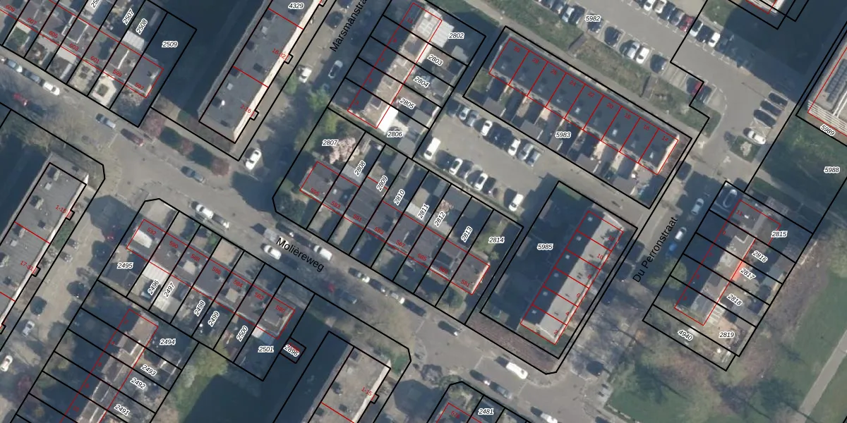 Gebruik de zoekbalk of klik op een perceel om informatie over het perceel te bekijken.