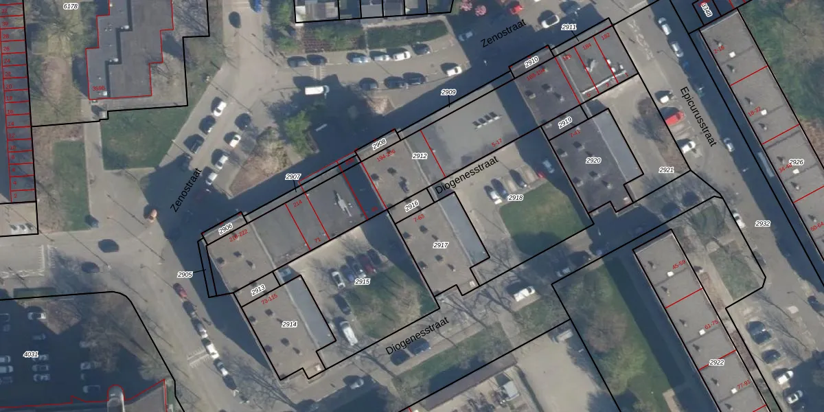 Gebruik de zoekbalk of klik op een perceel om informatie over het perceel te bekijken.