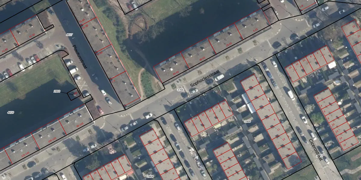 Gebruik de zoekbalk of klik op een perceel om informatie over het perceel te bekijken.