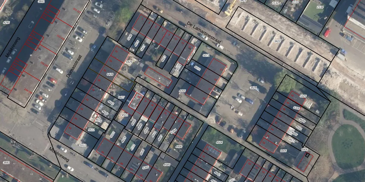 Gebruik de zoekbalk of klik op een perceel om informatie over het perceel te bekijken.