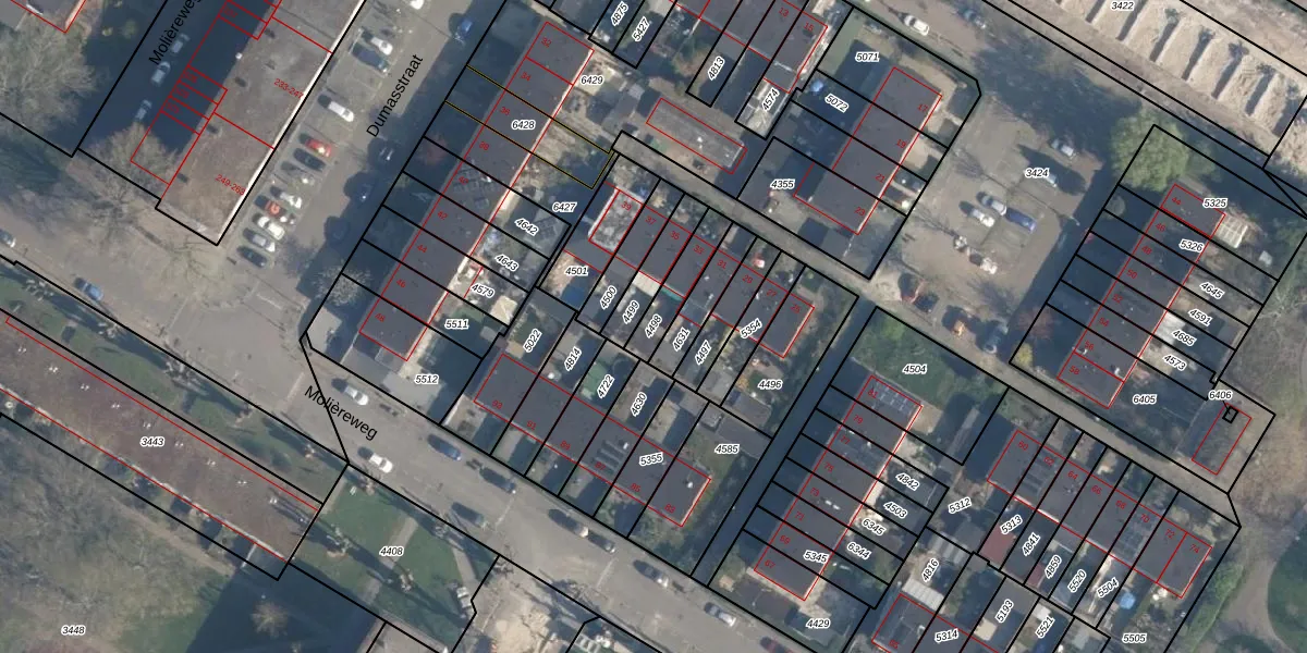 Gebruik de zoekbalk of klik op een perceel om informatie over het perceel te bekijken.