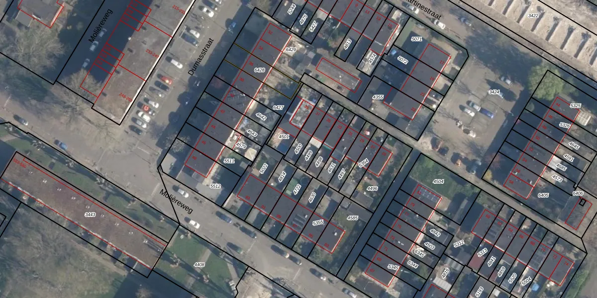 Gebruik de zoekbalk of klik op een perceel om informatie over het perceel te bekijken.
