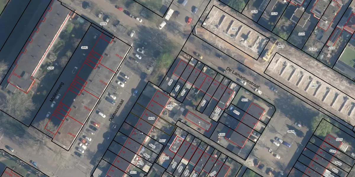 Gebruik de zoekbalk of klik op een perceel om informatie over het perceel te bekijken.