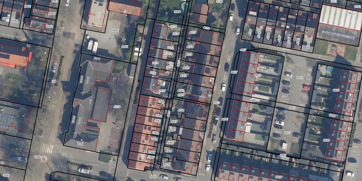 Gebruik de zoekbalk of klik op een perceel om informatie over het perceel te bekijken.