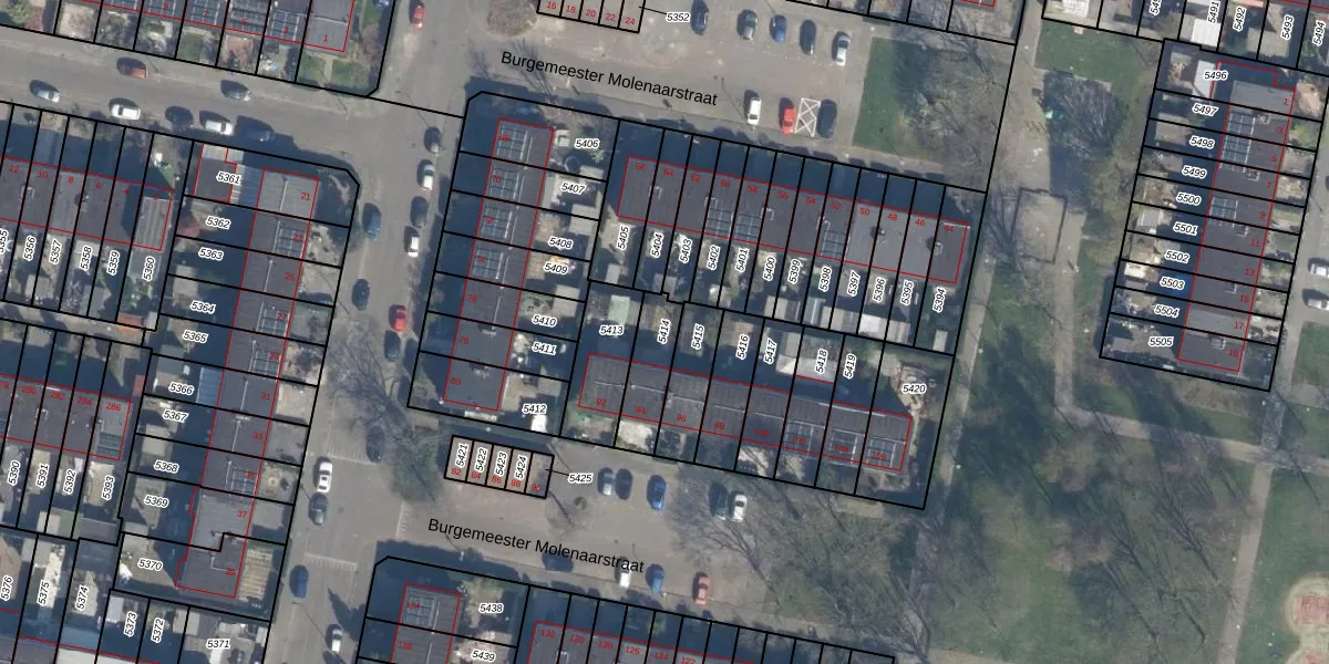 Gebruik de zoekbalk of klik op een perceel om informatie over het perceel te bekijken.
