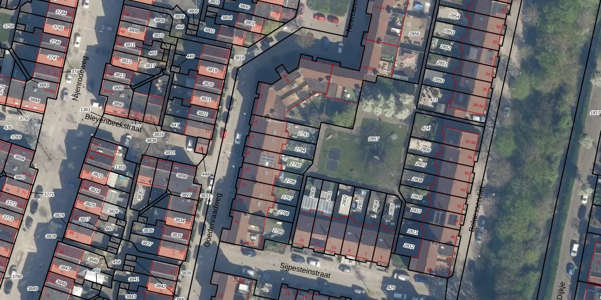 Gebruik de zoekbalk of klik op een perceel om informatie over het perceel te bekijken.