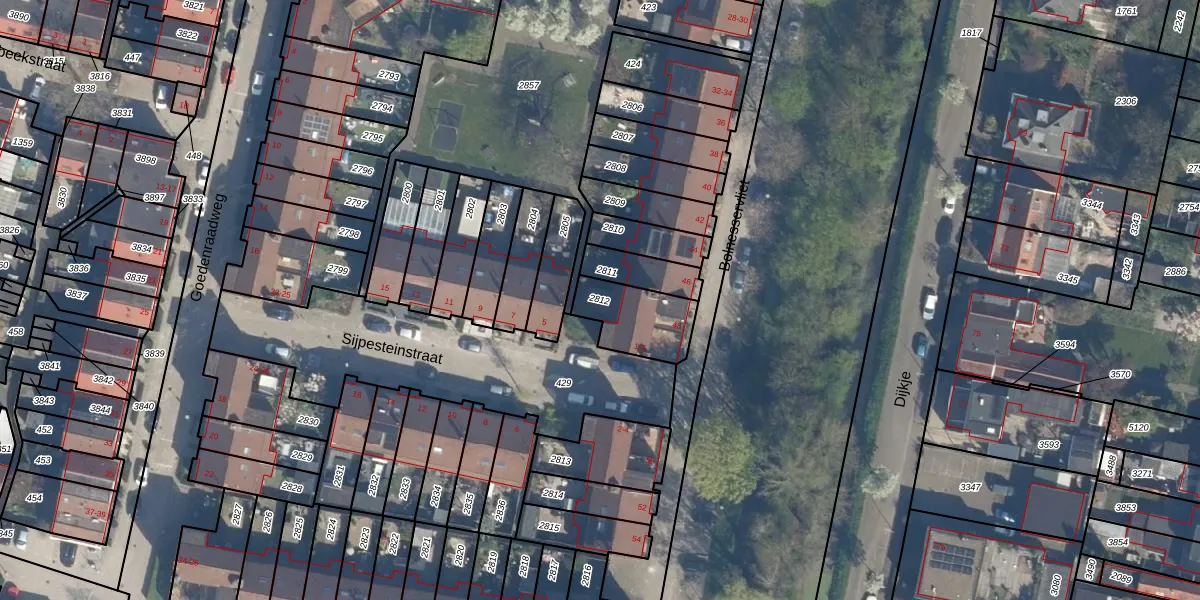 Gebruik de zoekbalk of klik op een perceel om informatie over het perceel te bekijken.