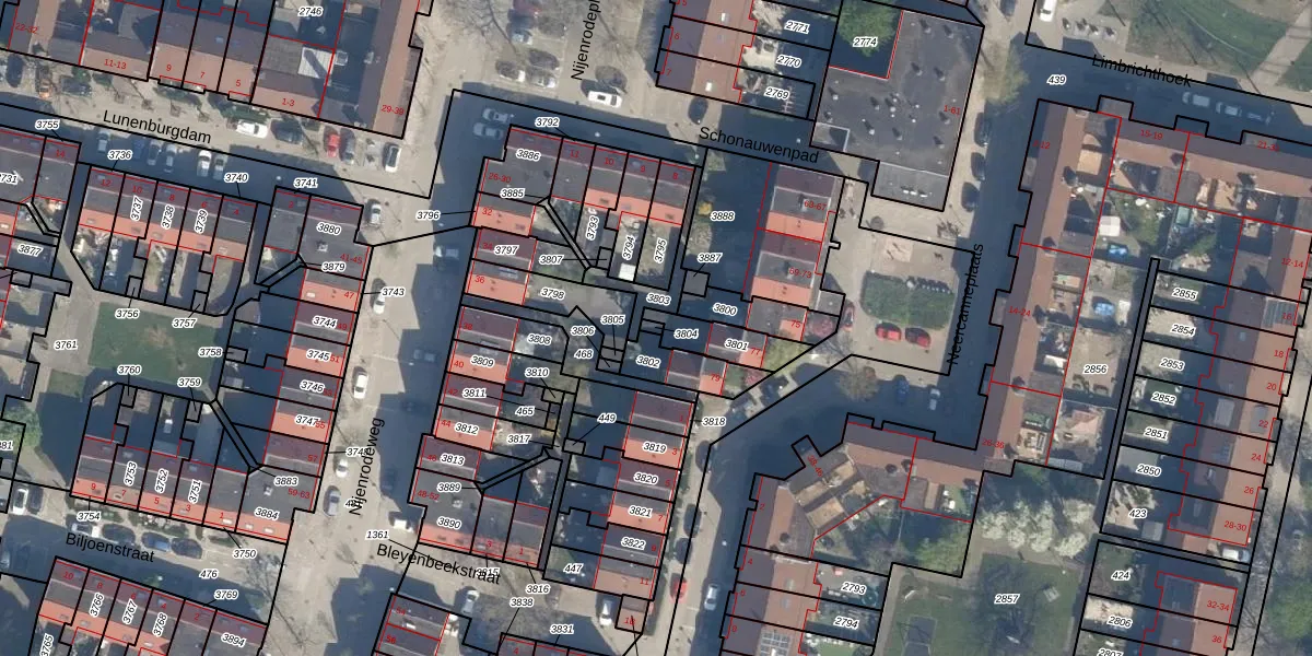 Gebruik de zoekbalk of klik op een perceel om informatie over het perceel te bekijken.