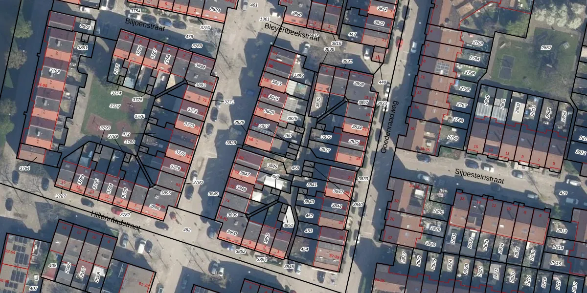 Gebruik de zoekbalk of klik op een perceel om informatie over het perceel te bekijken.