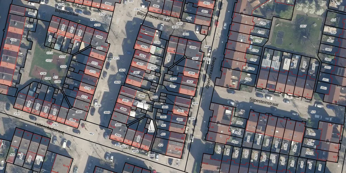 Gebruik de zoekbalk of klik op een perceel om informatie over het perceel te bekijken.