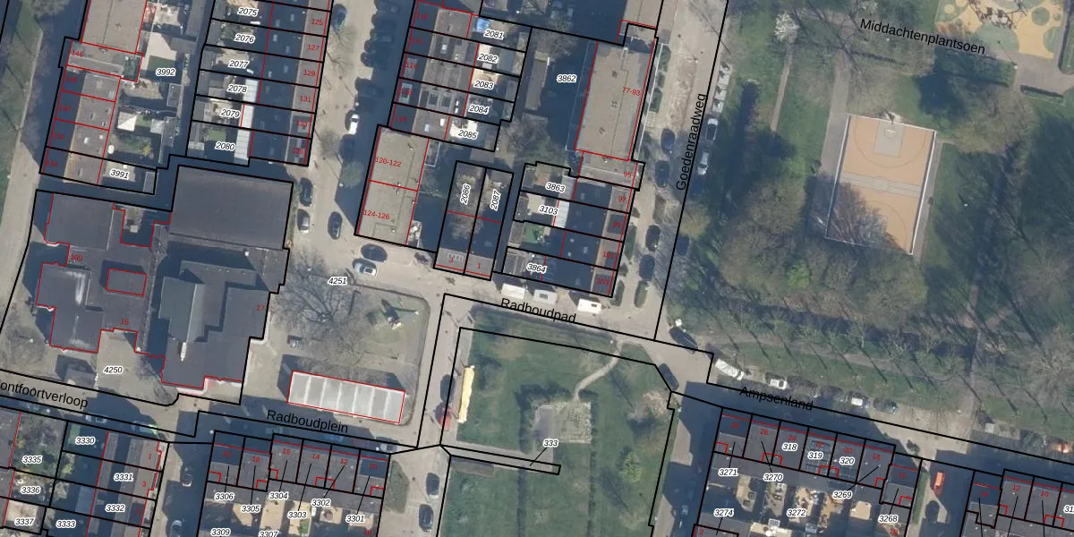 Gebruik de zoekbalk of klik op een perceel om informatie over het perceel te bekijken.