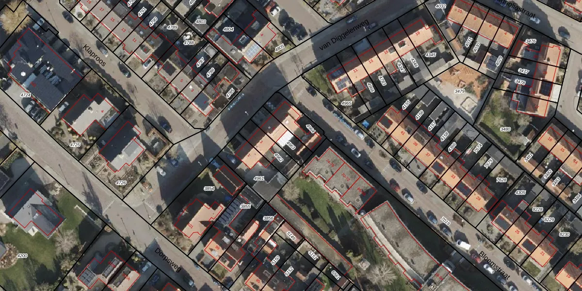 Gebruik de zoekbalk of klik op een perceel om informatie over het perceel te bekijken.