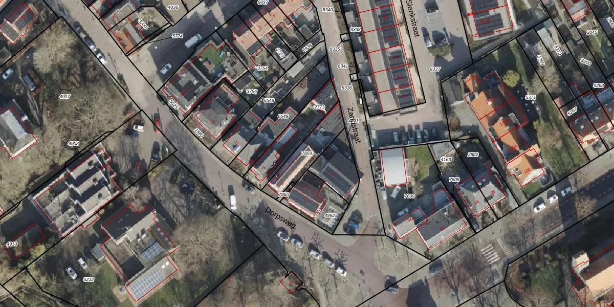 Gebruik de zoekbalk of klik op een perceel om informatie over het perceel te bekijken.