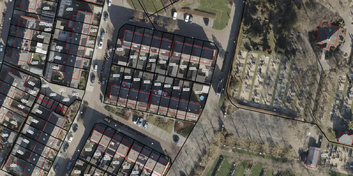 Gebruik de zoekbalk of klik op een perceel om informatie over het perceel te bekijken.