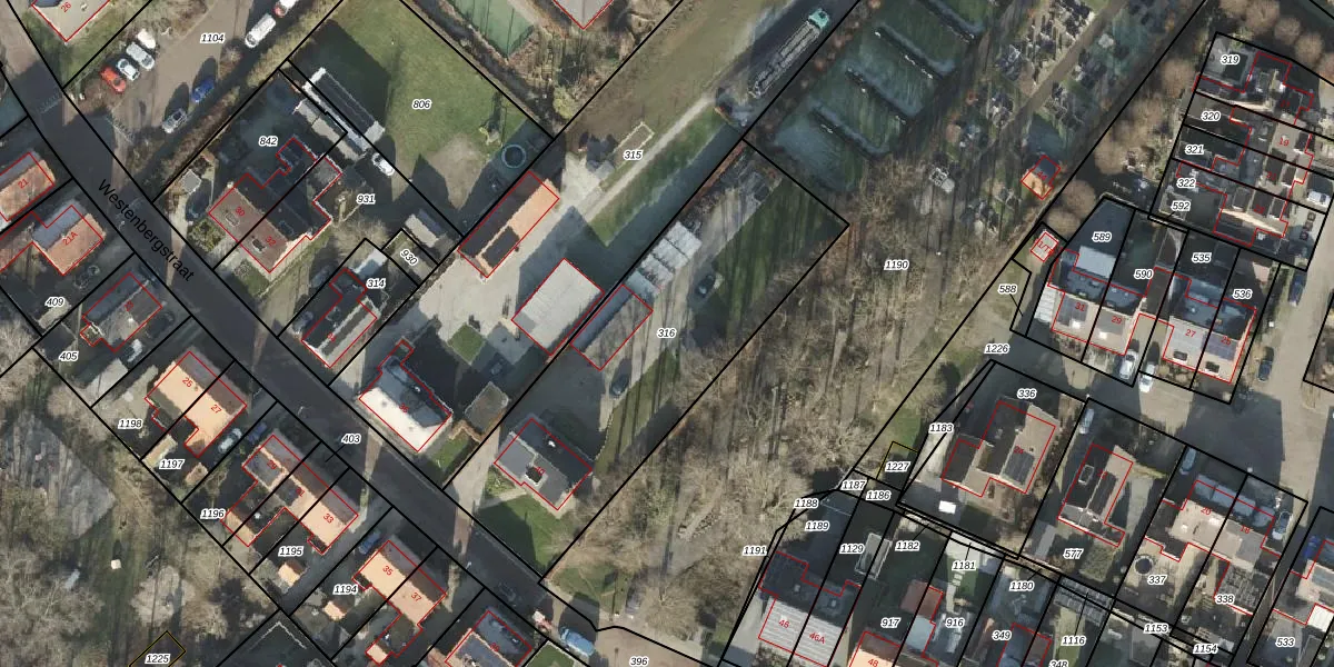 Gebruik de zoekbalk of klik op een perceel om informatie over het perceel te bekijken.