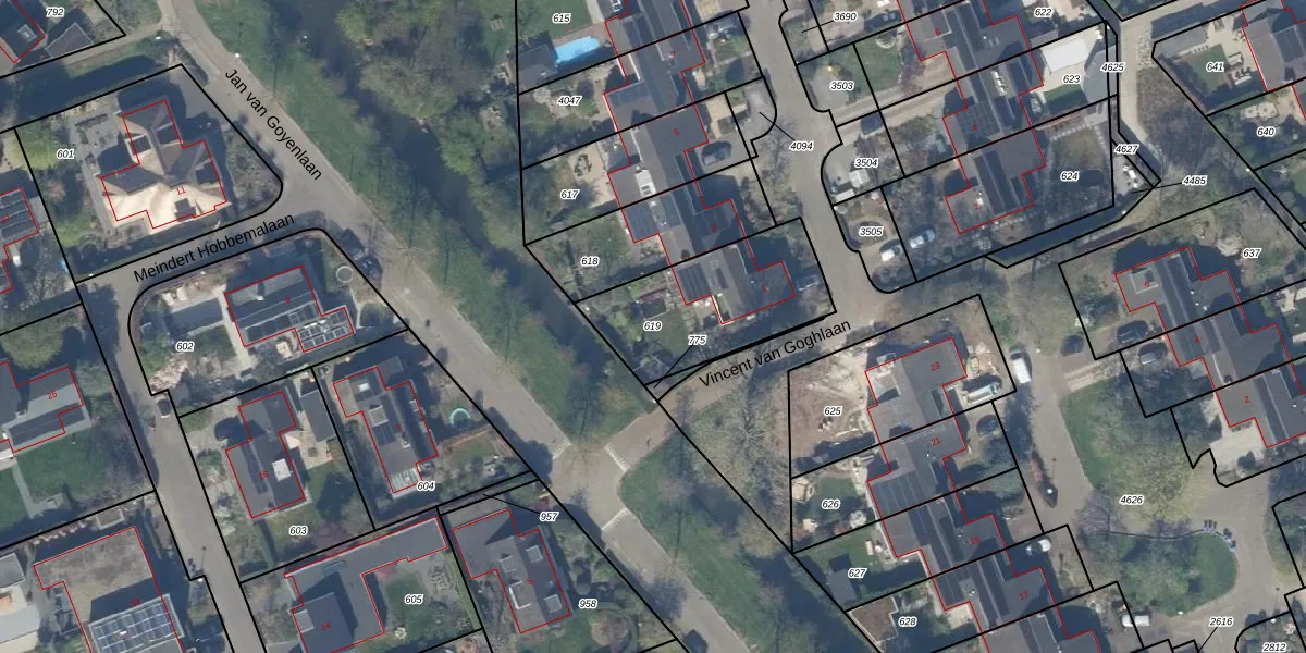 Gebruik de zoekbalk of klik op een perceel om informatie over het perceel te bekijken.