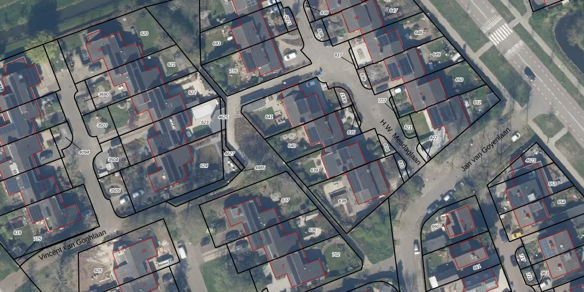 Gebruik de zoekbalk of klik op een perceel om informatie over het perceel te bekijken.