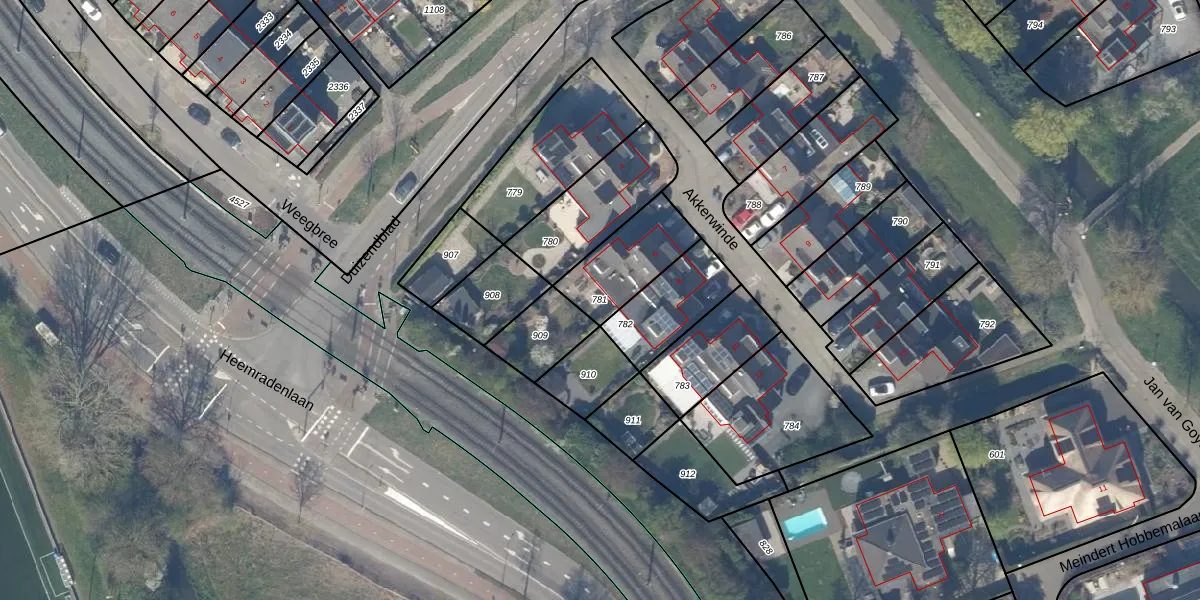Gebruik de zoekbalk of klik op een perceel om informatie over het perceel te bekijken.