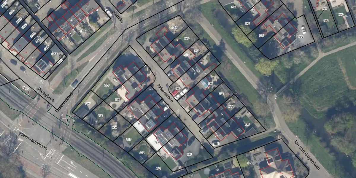 Gebruik de zoekbalk of klik op een perceel om informatie over het perceel te bekijken.