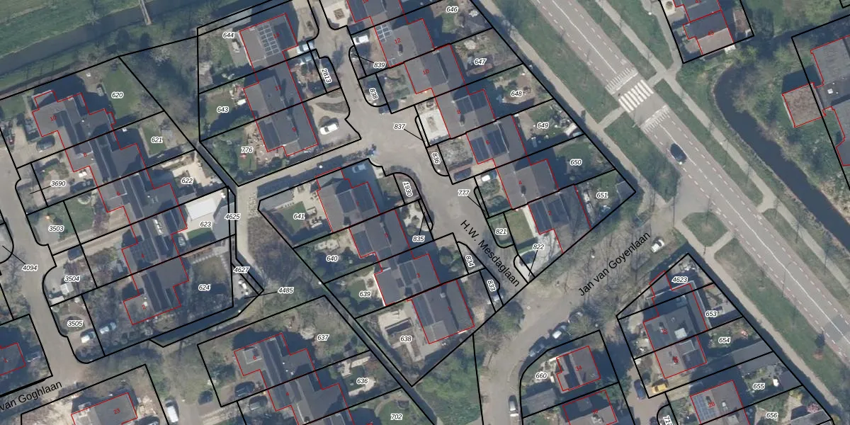Gebruik de zoekbalk of klik op een perceel om informatie over het perceel te bekijken.