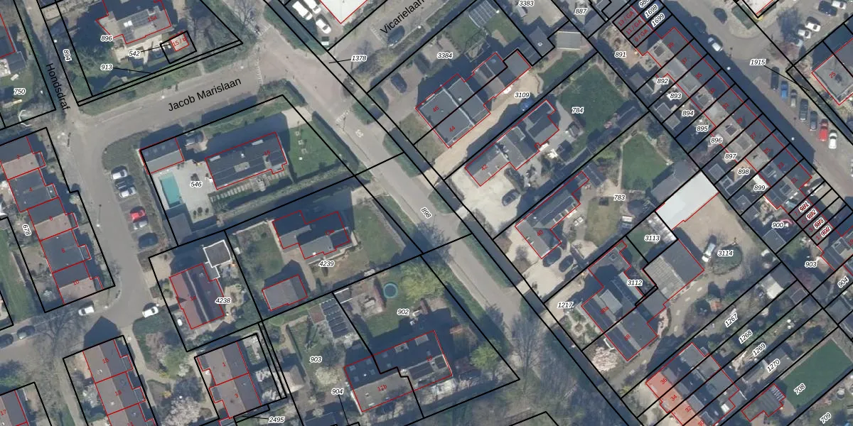 Gebruik de zoekbalk of klik op een perceel om informatie over het perceel te bekijken.