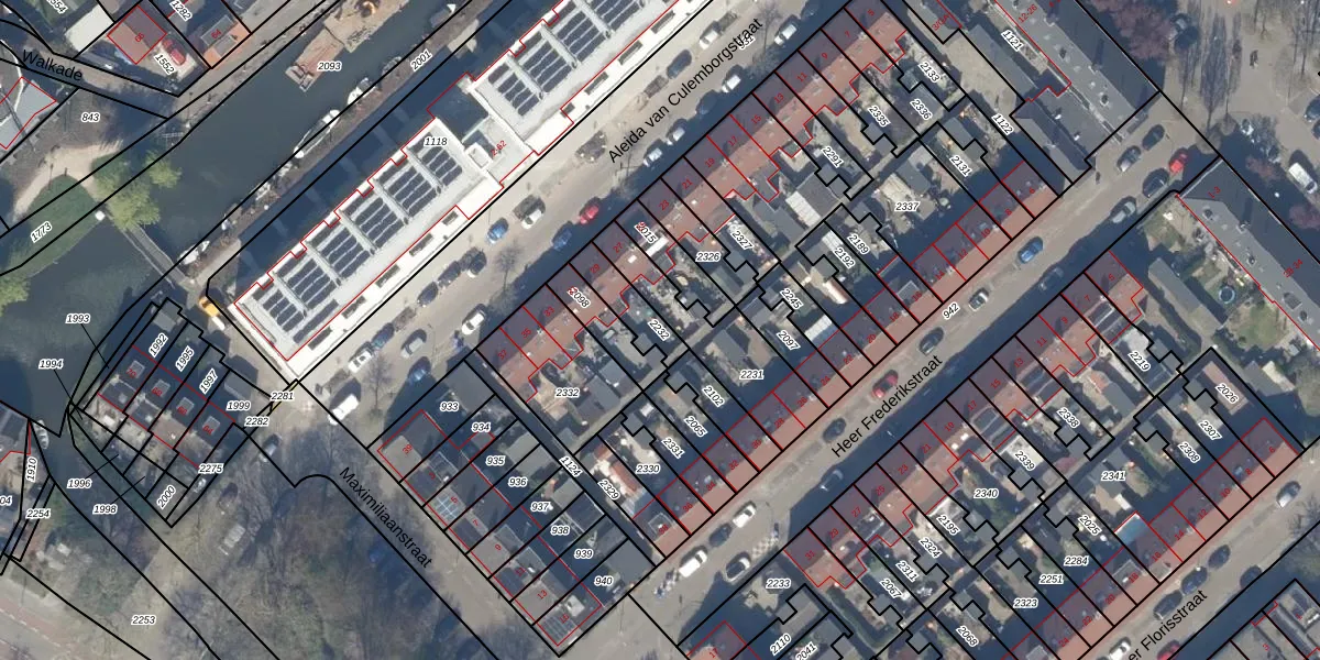 Gebruik de zoekbalk of klik op een perceel om informatie over het perceel te bekijken.