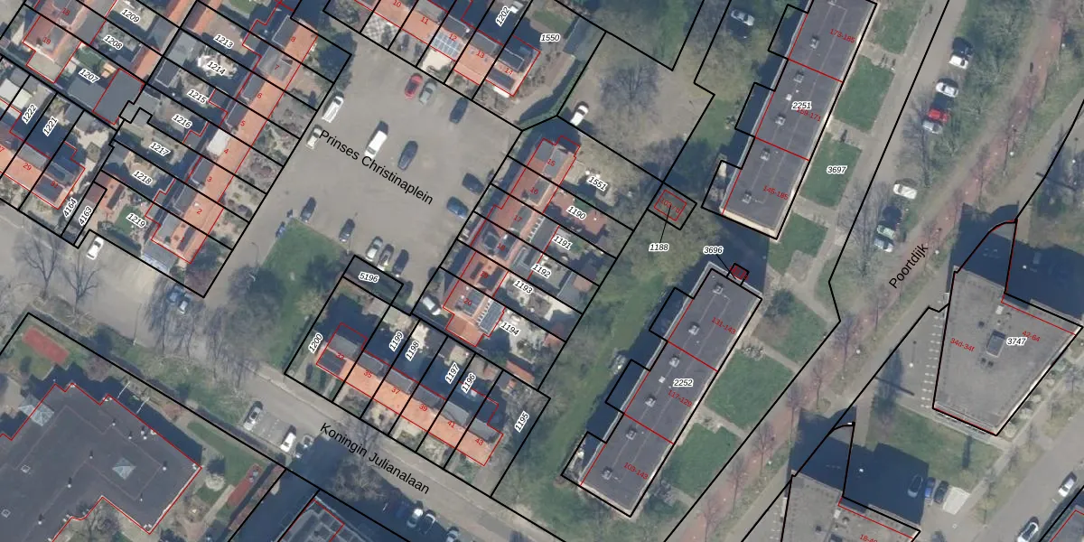 Gebruik de zoekbalk of klik op een perceel om informatie over het perceel te bekijken.