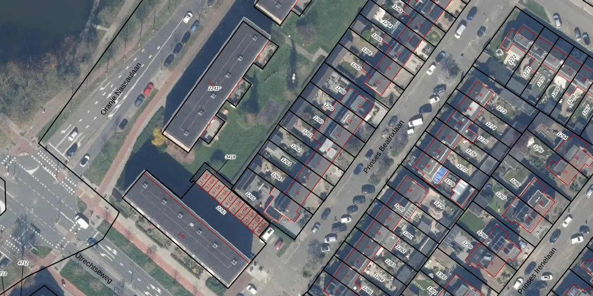Gebruik de zoekbalk of klik op een perceel om informatie over het perceel te bekijken.
