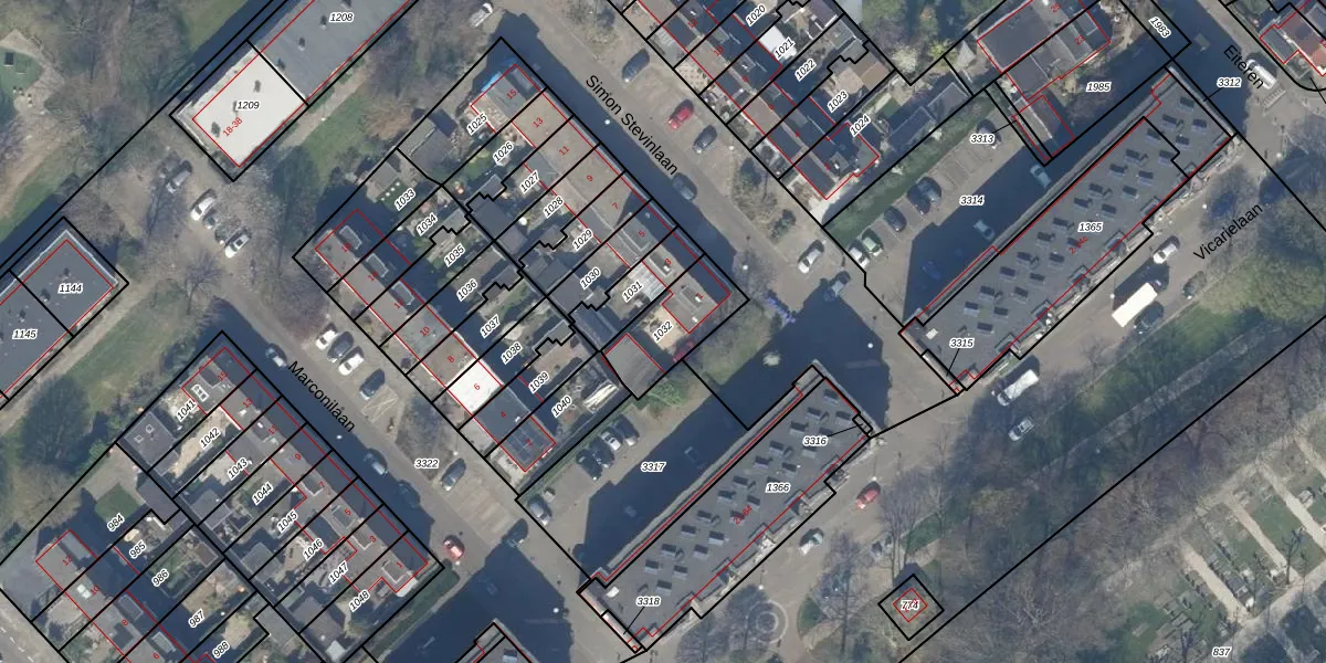 Gebruik de zoekbalk of klik op een perceel om informatie over het perceel te bekijken.