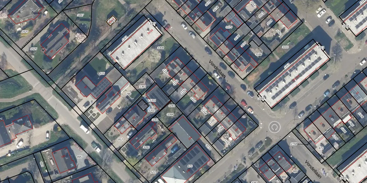Gebruik de zoekbalk of klik op een perceel om informatie over het perceel te bekijken.