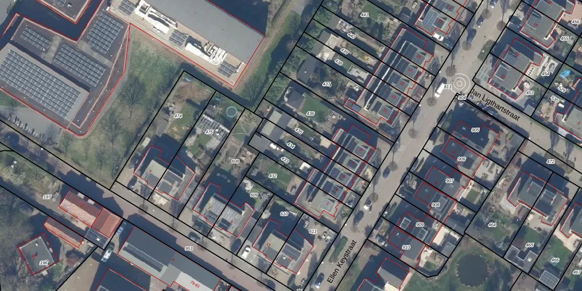 Gebruik de zoekbalk of klik op een perceel om informatie over het perceel te bekijken.