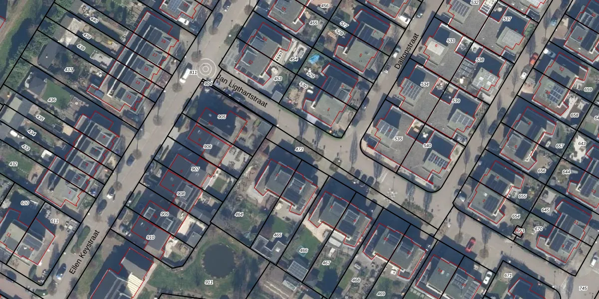 Gebruik de zoekbalk of klik op een perceel om informatie over het perceel te bekijken.
