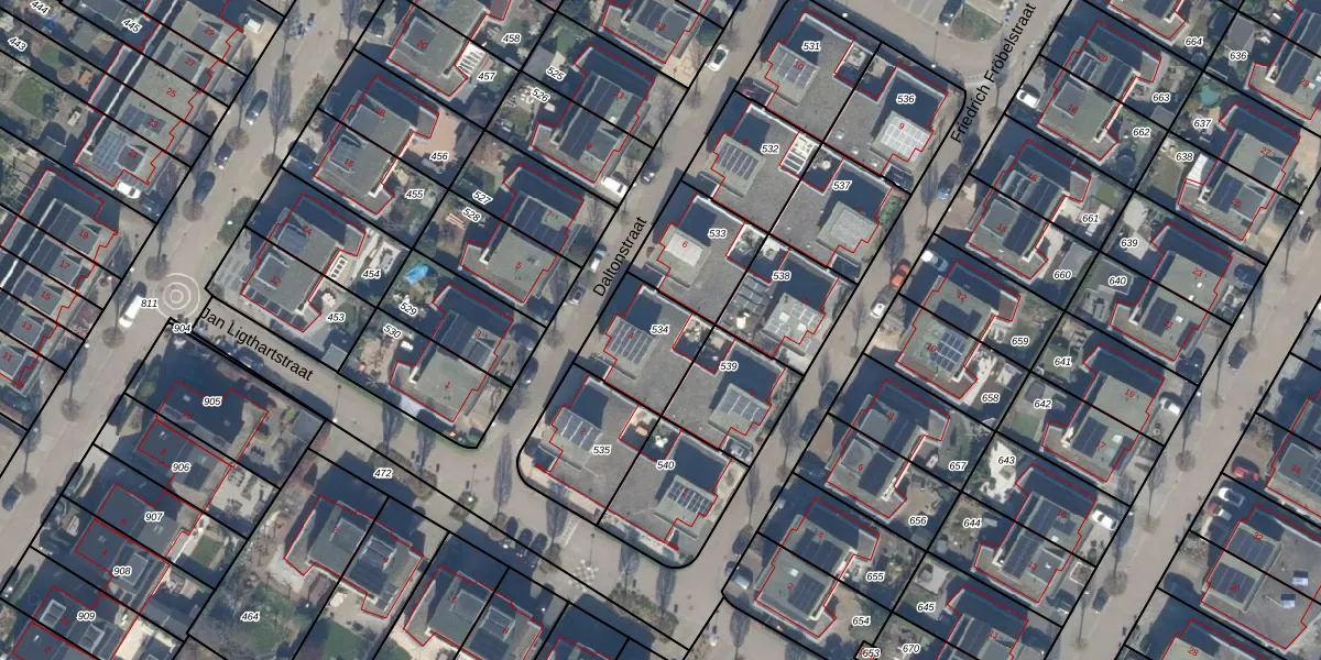 Gebruik de zoekbalk of klik op een perceel om informatie over het perceel te bekijken.