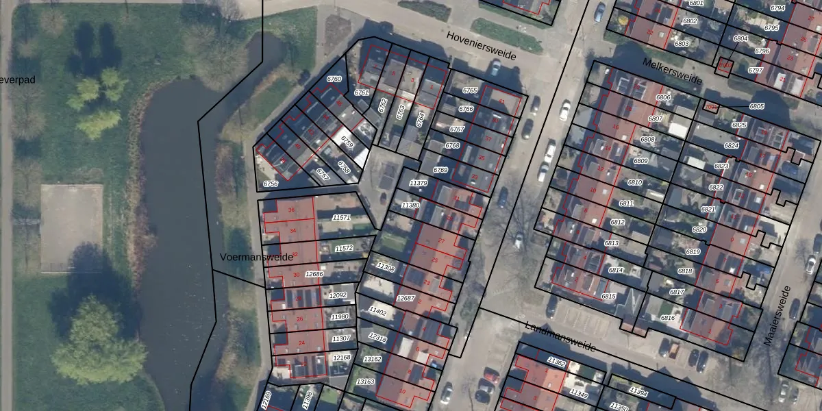 Gebruik de zoekbalk of klik op een perceel om informatie over het perceel te bekijken.