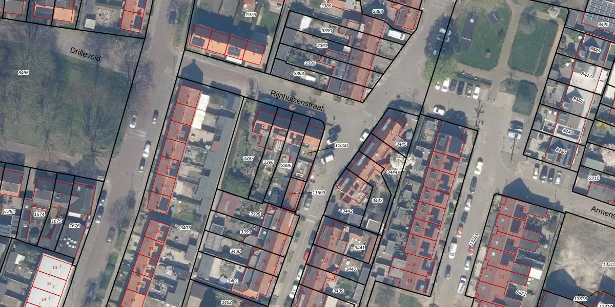 Gebruik de zoekbalk of klik op een perceel om informatie over het perceel te bekijken.
