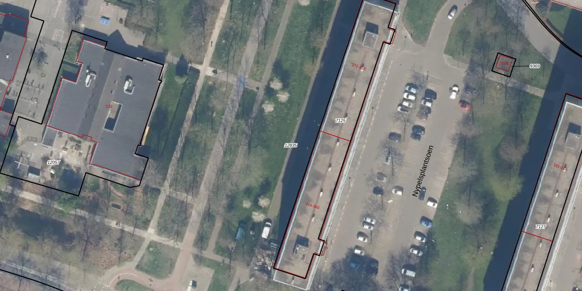 Gebruik de zoekbalk of klik op een perceel om informatie over het perceel te bekijken.