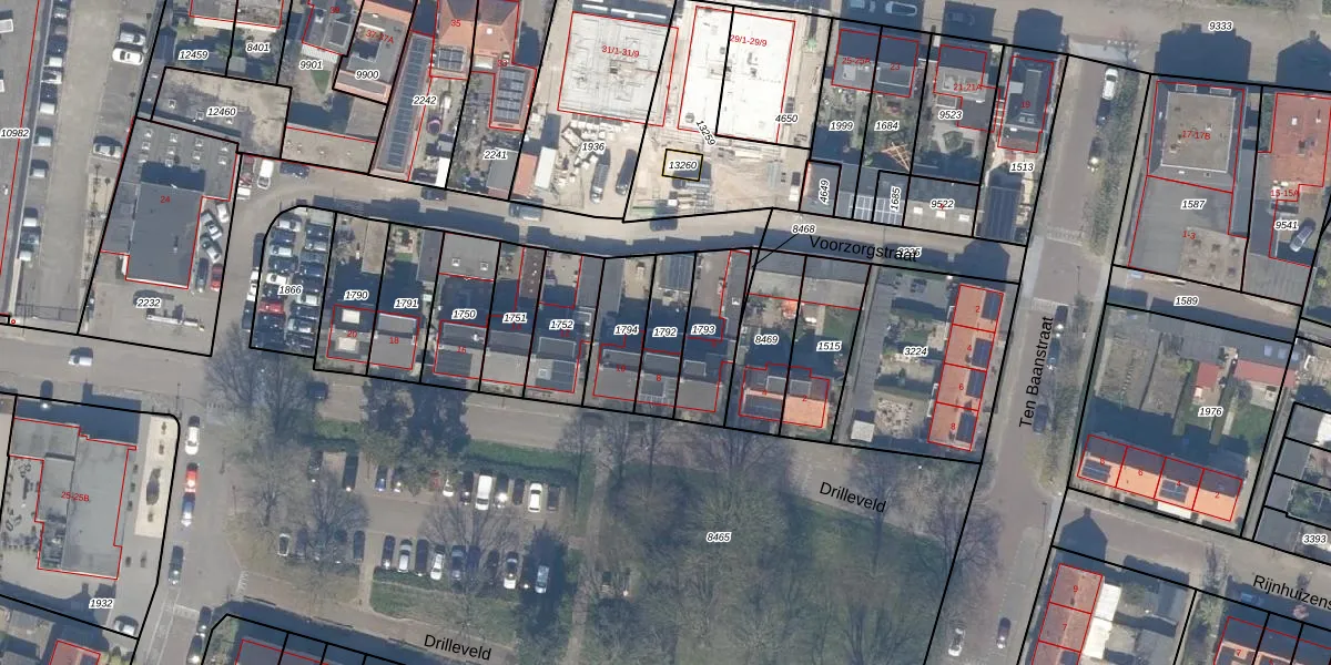 Gebruik de zoekbalk of klik op een perceel om informatie over het perceel te bekijken.