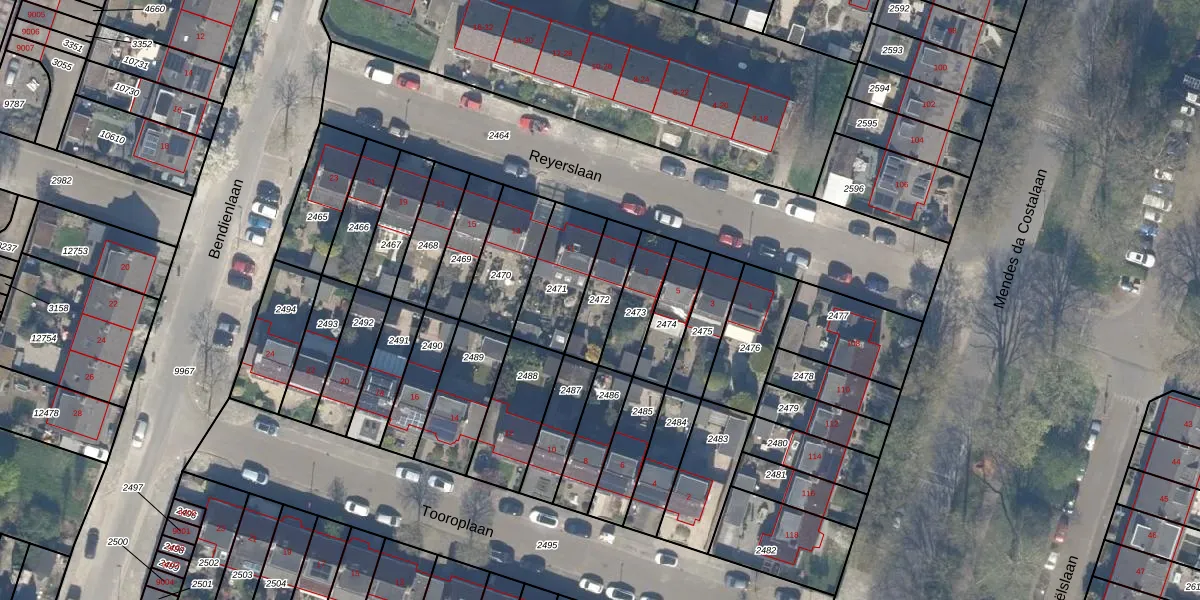 Gebruik de zoekbalk of klik op een perceel om informatie over het perceel te bekijken.